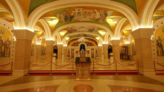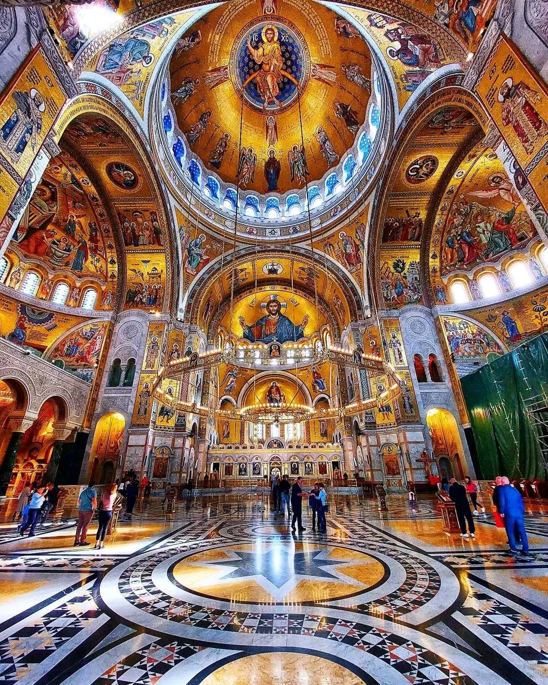The vast interior features a crypt, treasury, and Saint Lazar’s church, but its defining feature is the breathtaking mosaics. Created under the direction of Russian artist Nikolay Mukhin, they cover thousands of square meters in glittering gold and vivid colors. The dome’s central mosaic depicts the Ascension of Christ, spread across 1,230 square meters and weighing 40 tons.